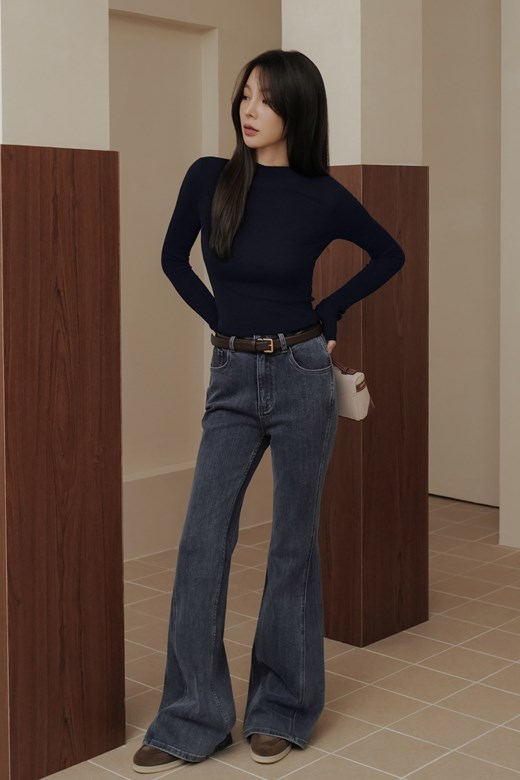 中腰刷色牛仔落地寬褲