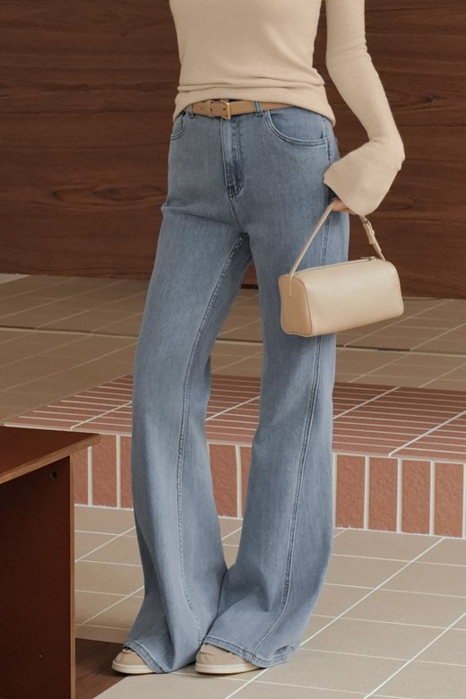 側剪接落地牛仔長褲
