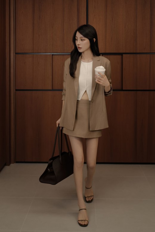 壓線開岔西裝長裙