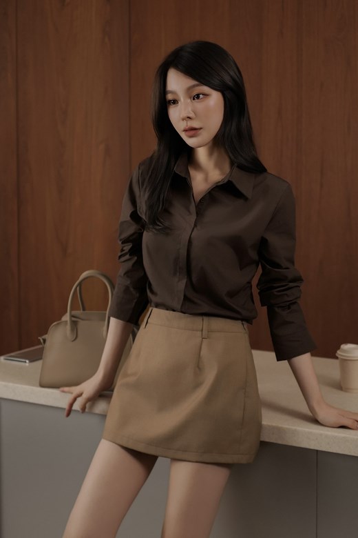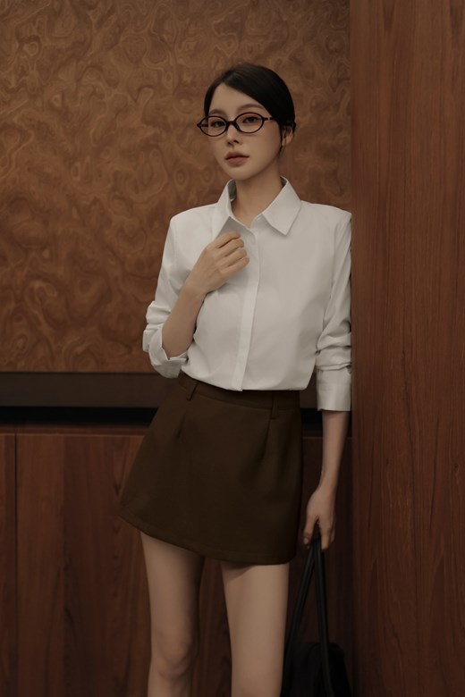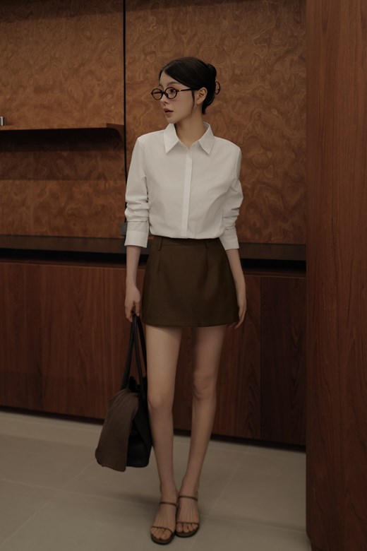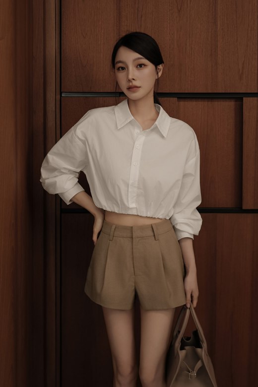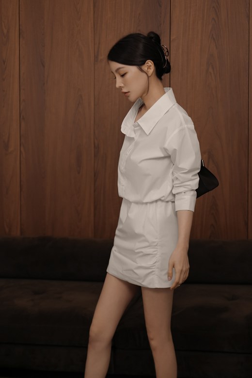 側抓皺襯衫短洋