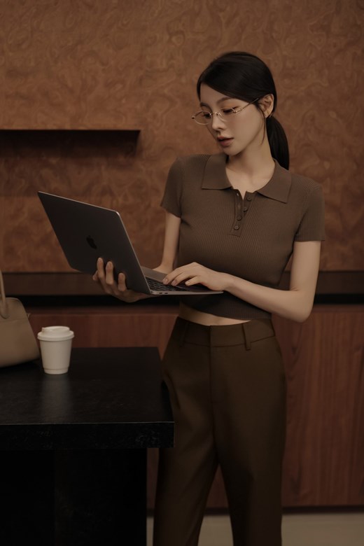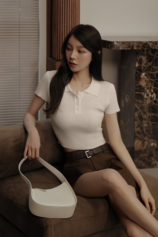 翻領針織短袖上衣