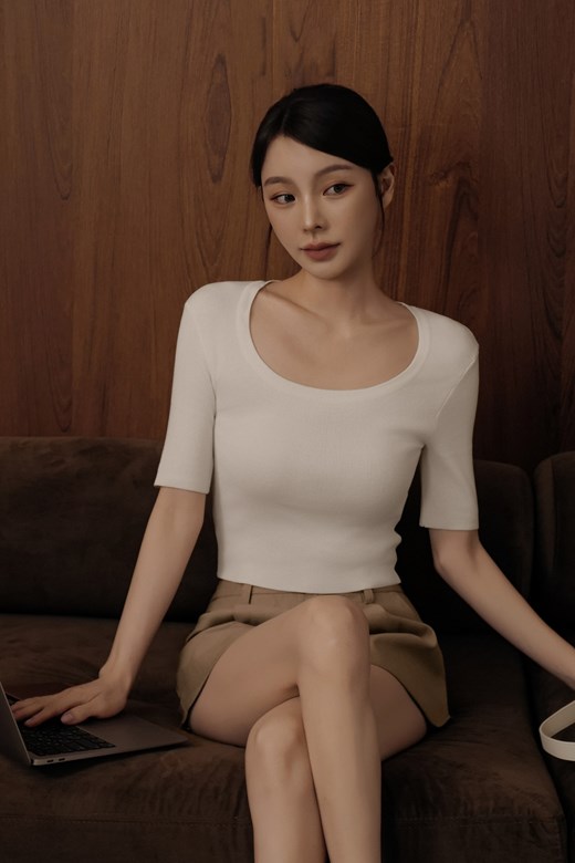 U領五分袖針織上衣