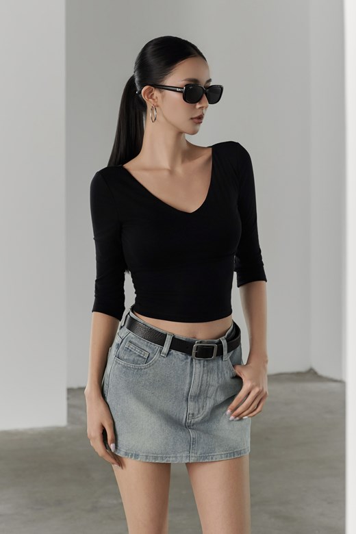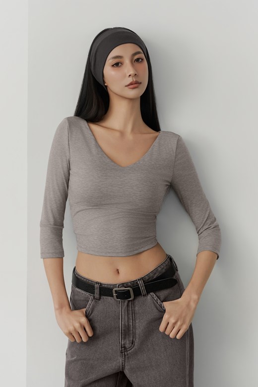 V領透肌針織長袖上衣