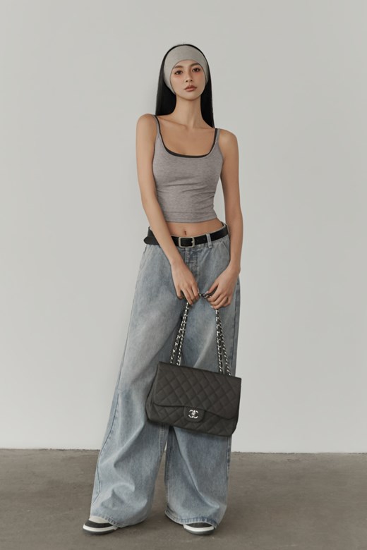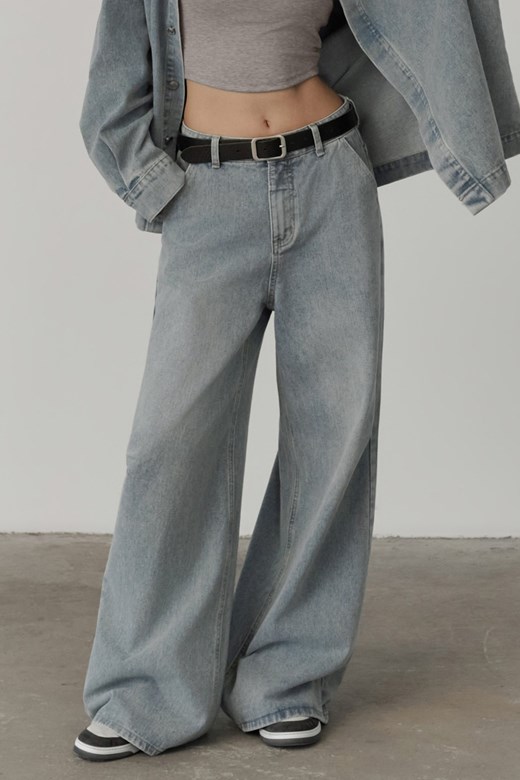 中腰刷色牛仔落地寬褲