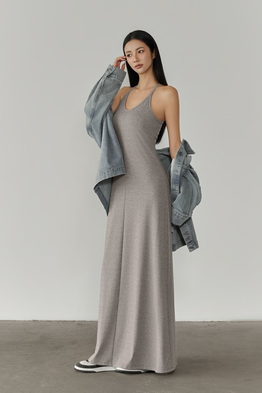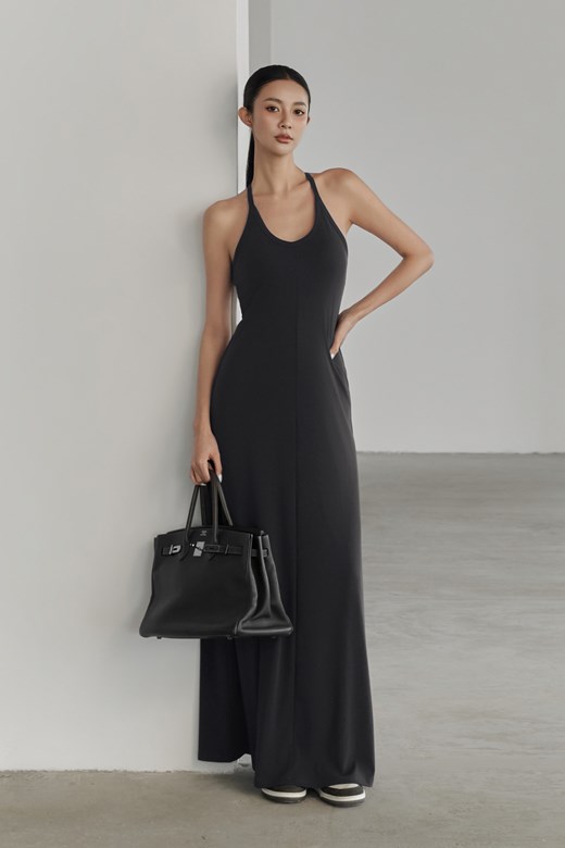 抽皺平口針織長裙套裝