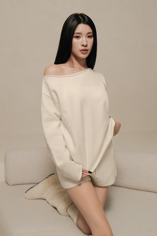 軟絨針織斜肩寬鬆上衣