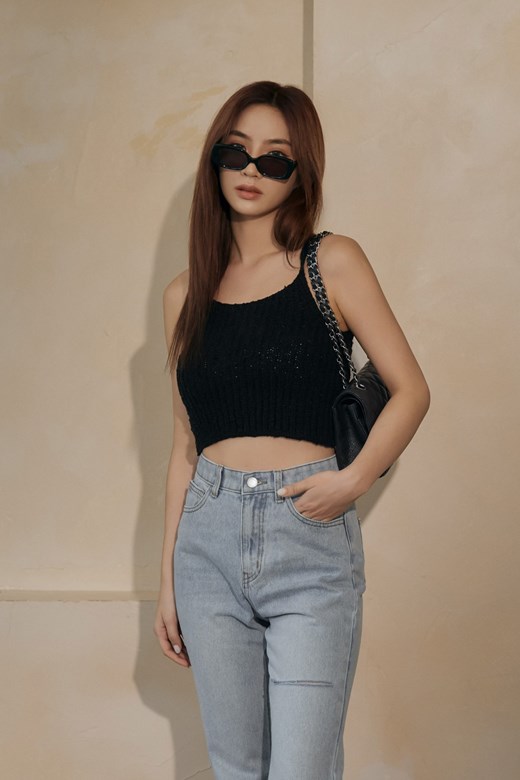 單肩細帶針織背心