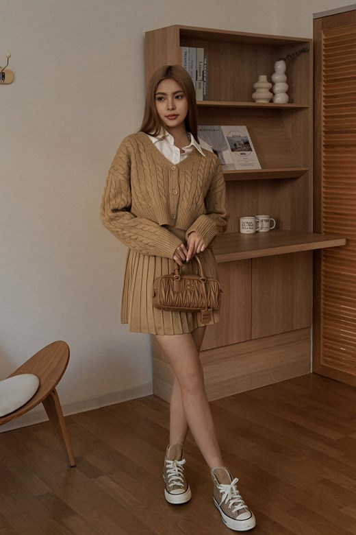 V領麻花開釦針織外套