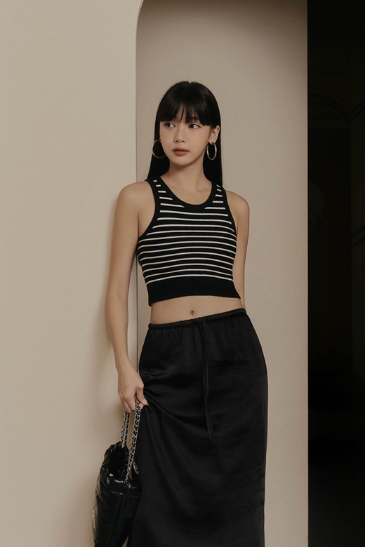 條紋削肩針織背心